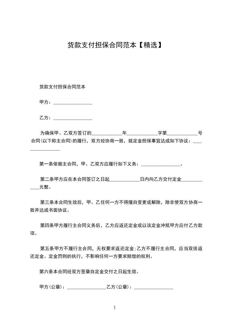 1、乙方将 作为付款的抵押。
