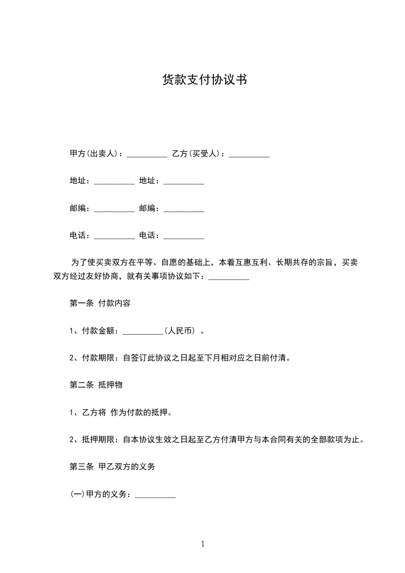 第一条 付款内容