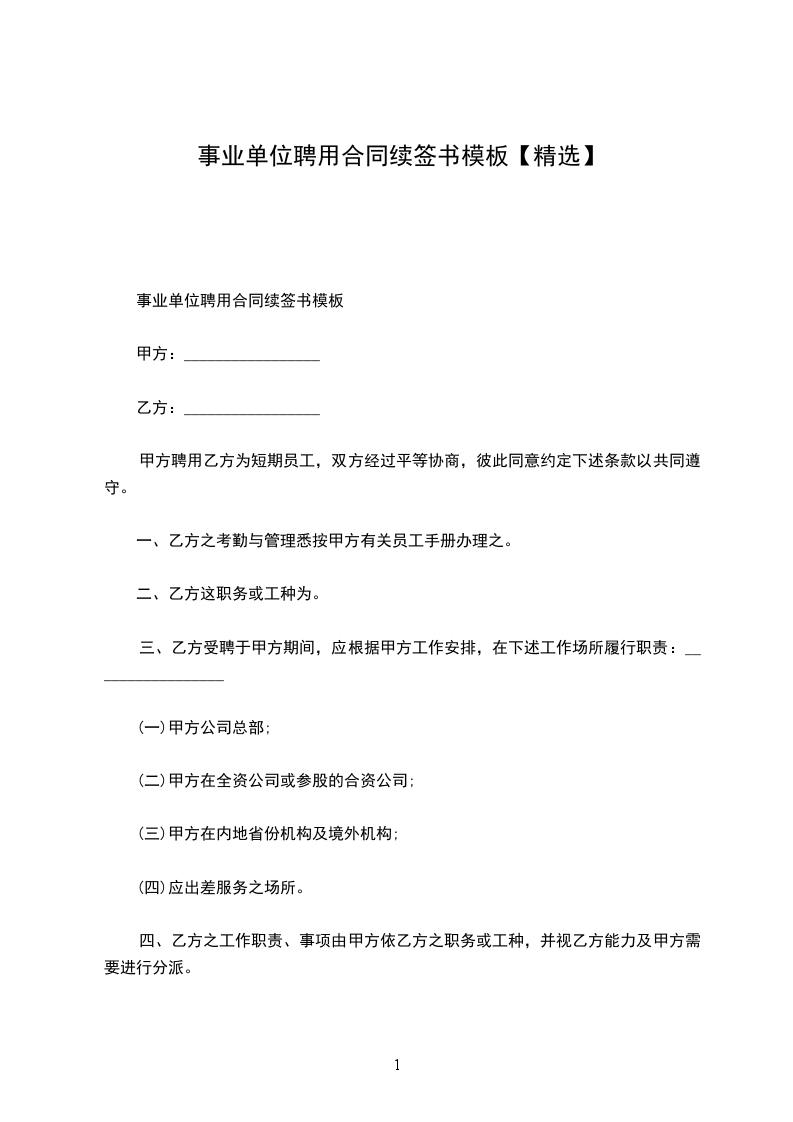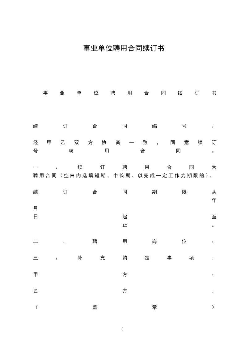 事业单位聘用合同续订书