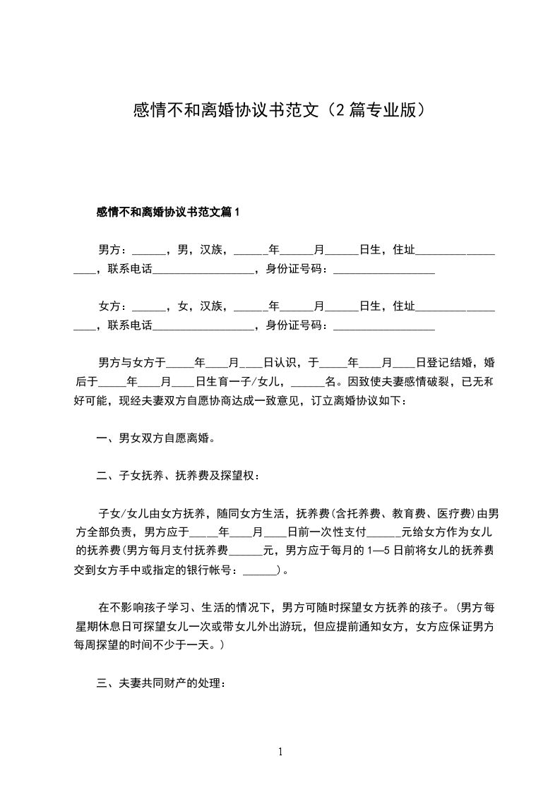 双方于____年____月____日在________的民政部门登记结婚,现因男女双方感情不和,自愿离婚,经双方协商一致,对有关事项,依照《民法典》的规定达成如下协议: