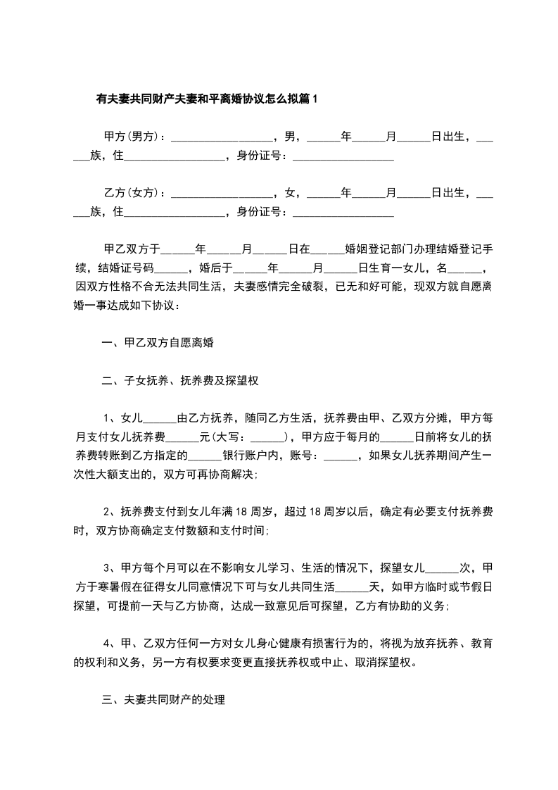 2024夫妻离婚协议书怎么拟篇2