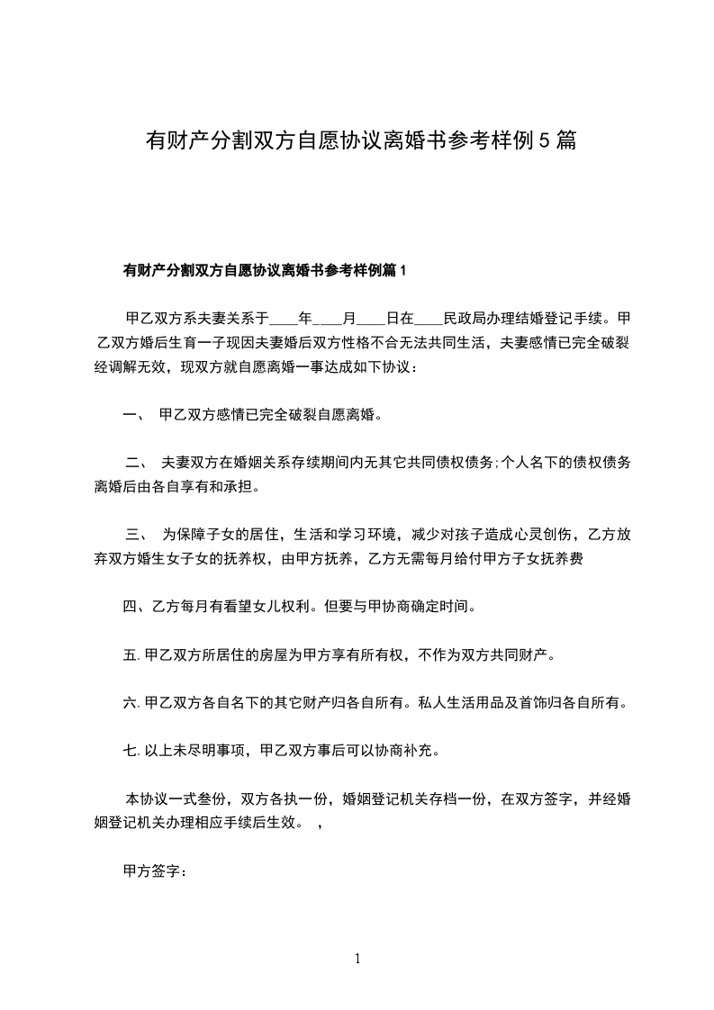 一、 甲乙双方感情已完全破裂自愿离婚。