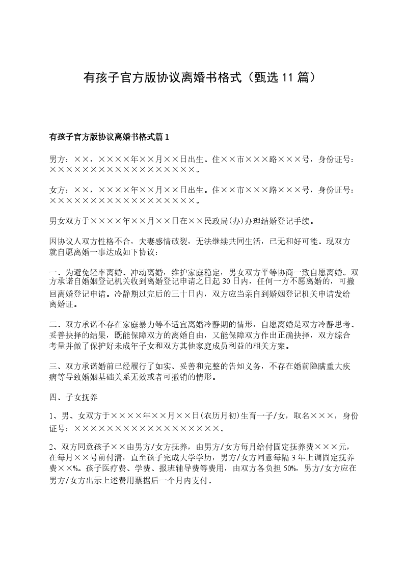 本协议书系双方真实意思表示,上述内容全部真实有效,一旦提供虚假情况,双方当事人自愿承担一切法律后果。本协议书一式____份,婚姻登记机关存档____份,双方各执____份,双方签字,并经婚姻登记机关办理离婚登记后生效。