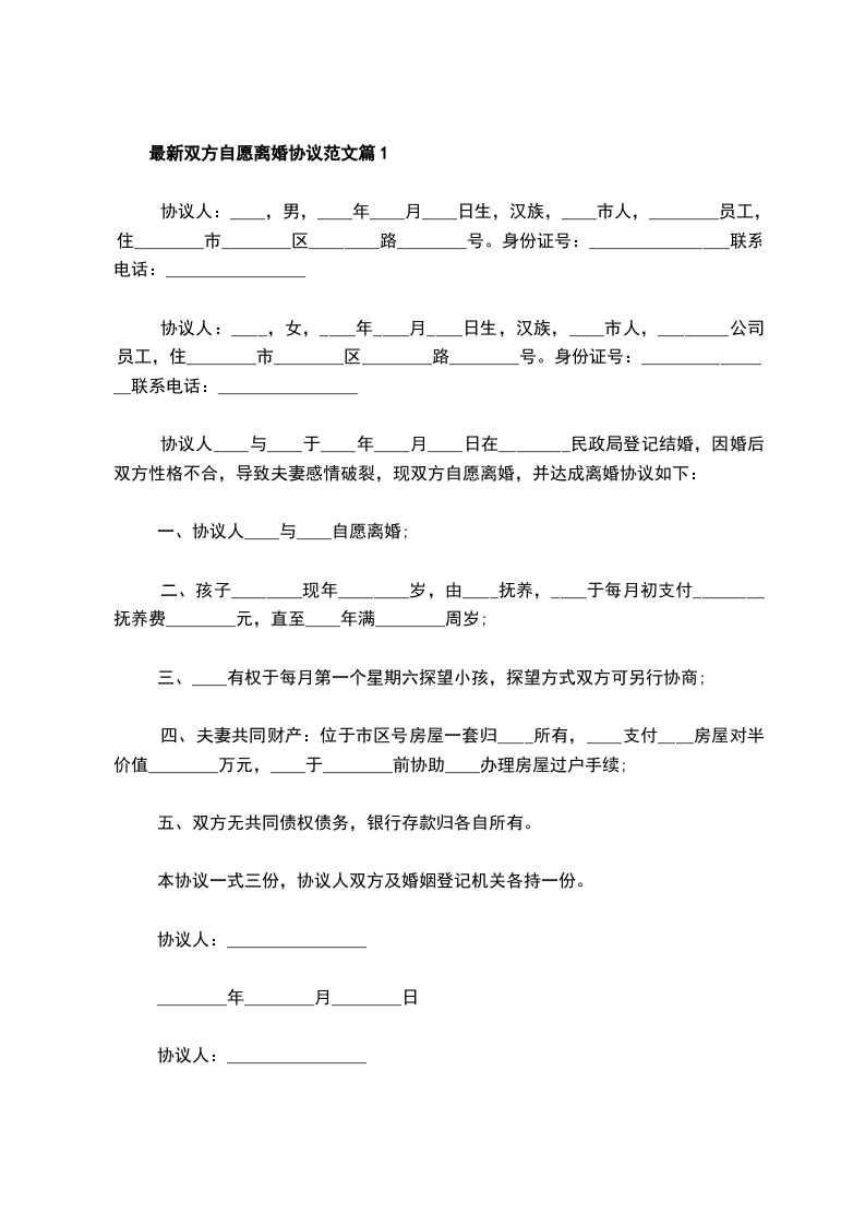 我们自愿离婚,双方均具有完全民事行为能力。完全同意本协议的各项安排,亦无其他不同意见。