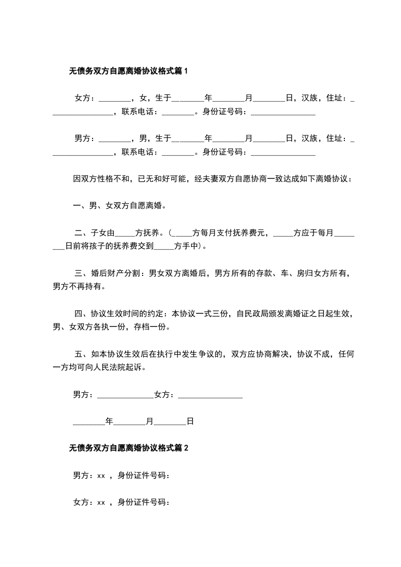 八、本协议一式三份,男、女双方各执一份,婚姻登记机关存档一份。