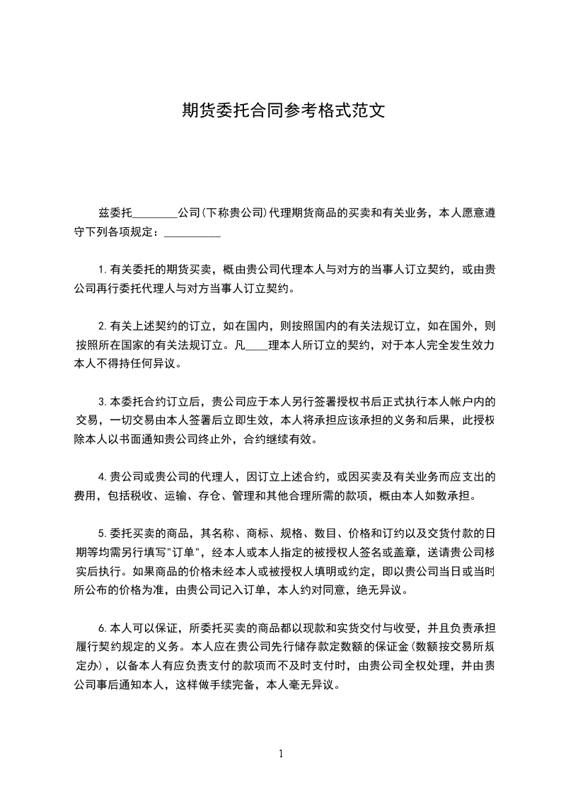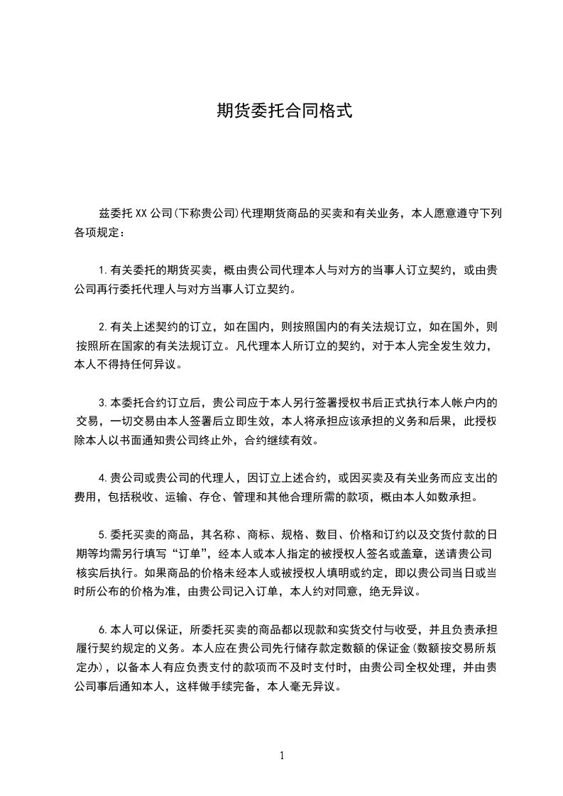 1.有关委托的期货买卖,概由贵公司代理本人与对方的当事人订立契约,或由贵公司再行委托代理人与对方当事人订立契约。