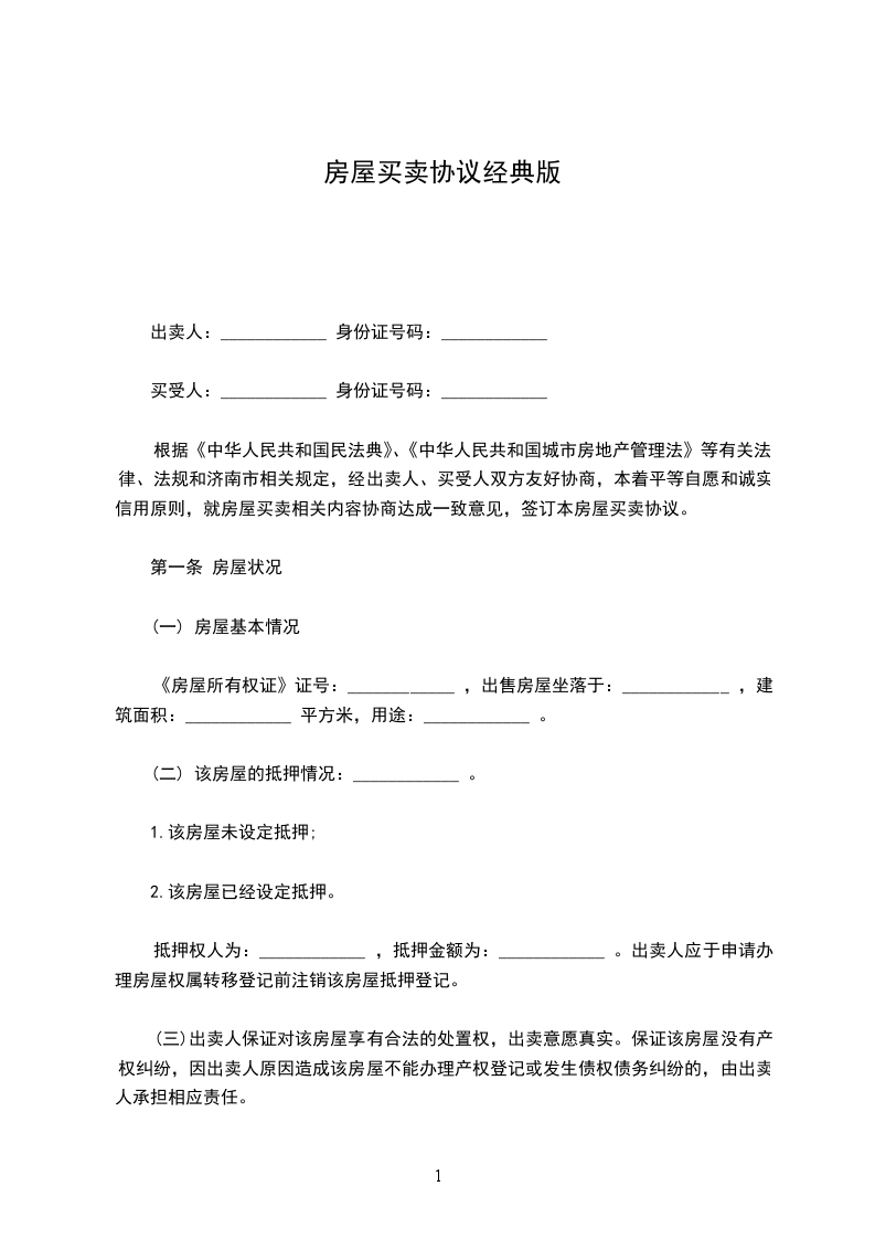 根据《中华人民共和国民法典》、《中华人民共和国城市房地产管理法》等有关法律、法规和济南市相关规定,经出卖人、买受人双方友好协商,本着平等自愿和诚实信用原则,就房屋买卖相关内容协商达成一致意见,签订本房屋买卖协议。