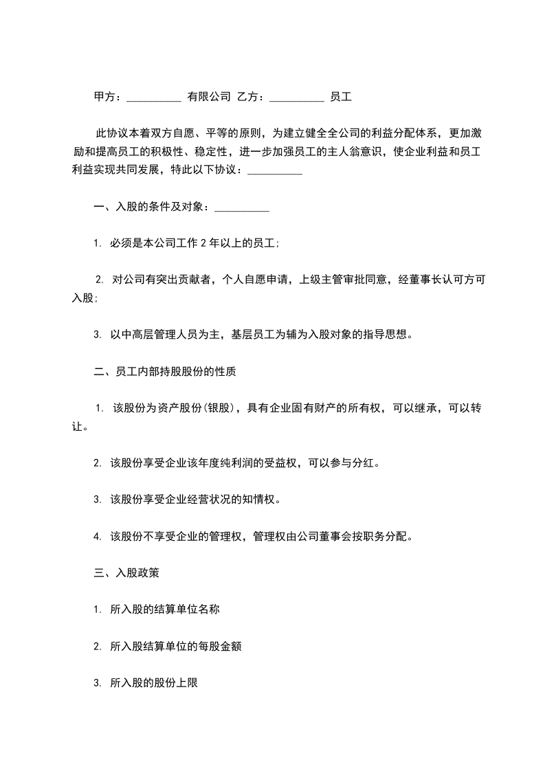 此协议本着双方自愿、平等的原则,为建立健全全公司的利益分配体系,更加激励和提高员工的积极性、稳定性,进一步加强员工的主人翁意识,使企业利益和员工利益实现共同发展,特此以下协议:__________