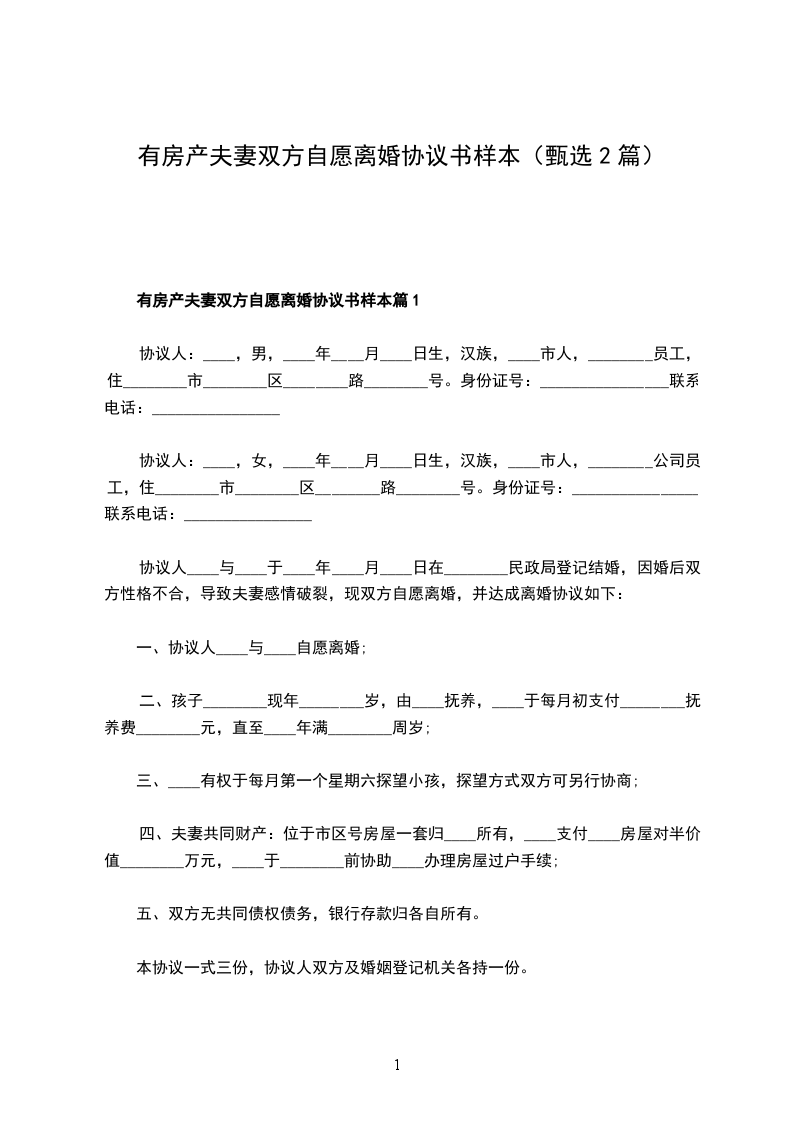 有房产夫妻双方自愿离婚协议书样本篇1