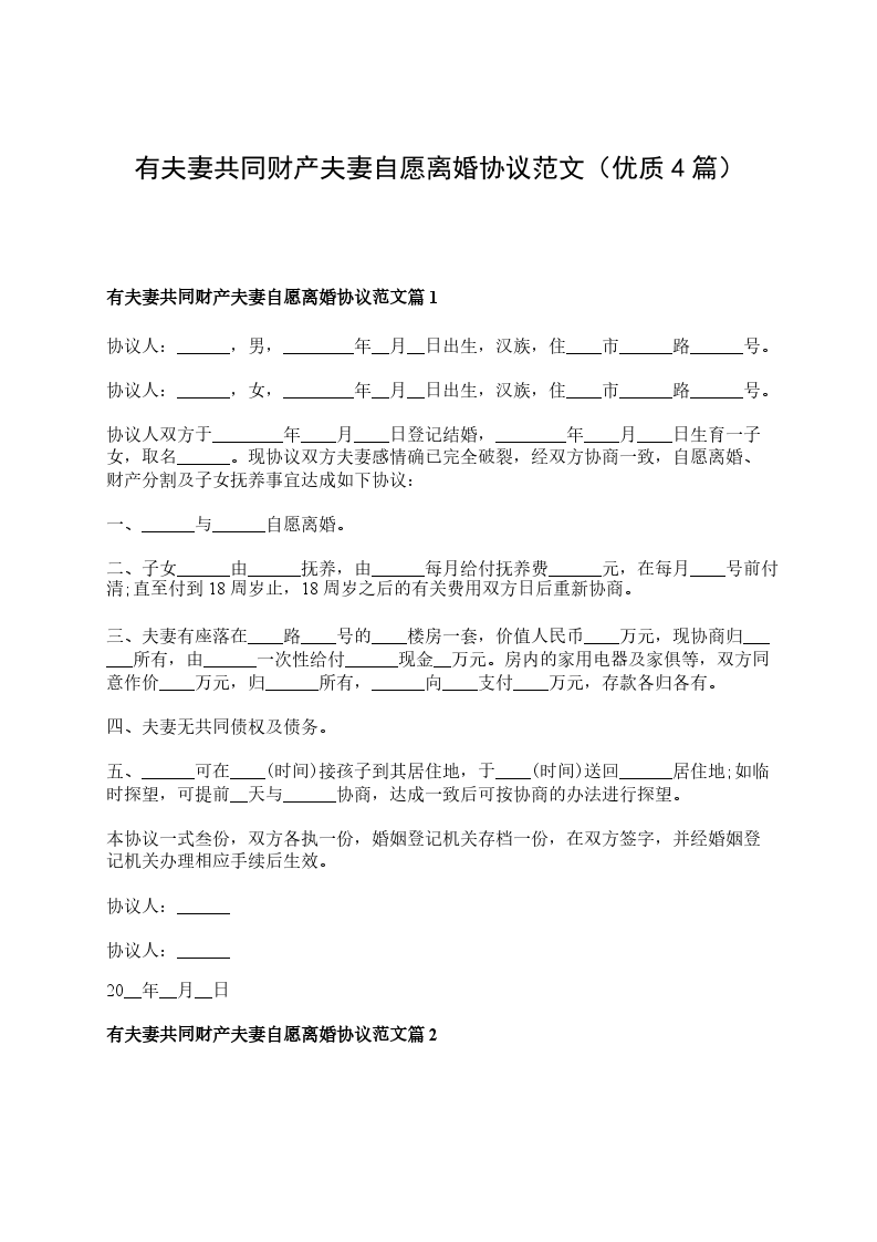 有夫妻共同财产夫妻自愿离婚协议范文篇4