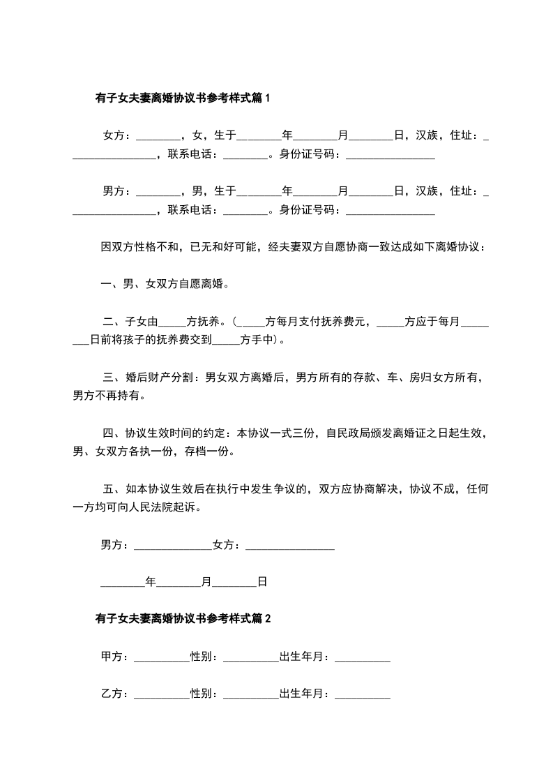 本《离婚协议书》一式叁份,甲、乙双方,婚姻登记机关各持一份,具有同等法律效力,自婚姻登记机关颁发《离婚证》之日起生效。