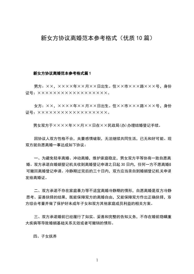 女方:___,女,汉族, 年 月 日生,住__市___街___号,身份证号码:__________________