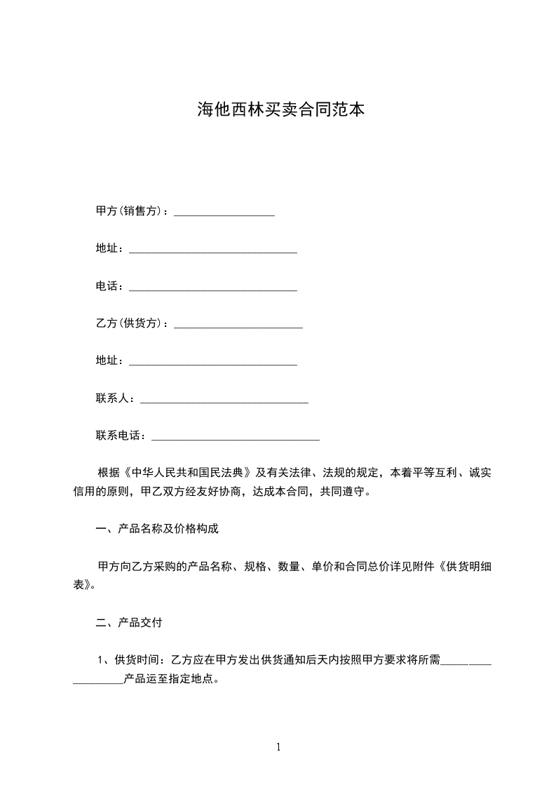 根据《中华人民共和国民法典》,甲、乙双方经协商确定,甲方向乙方购买药品。为明确双方责任和权利,特签订本合同,共同遵守。具体条款如下: