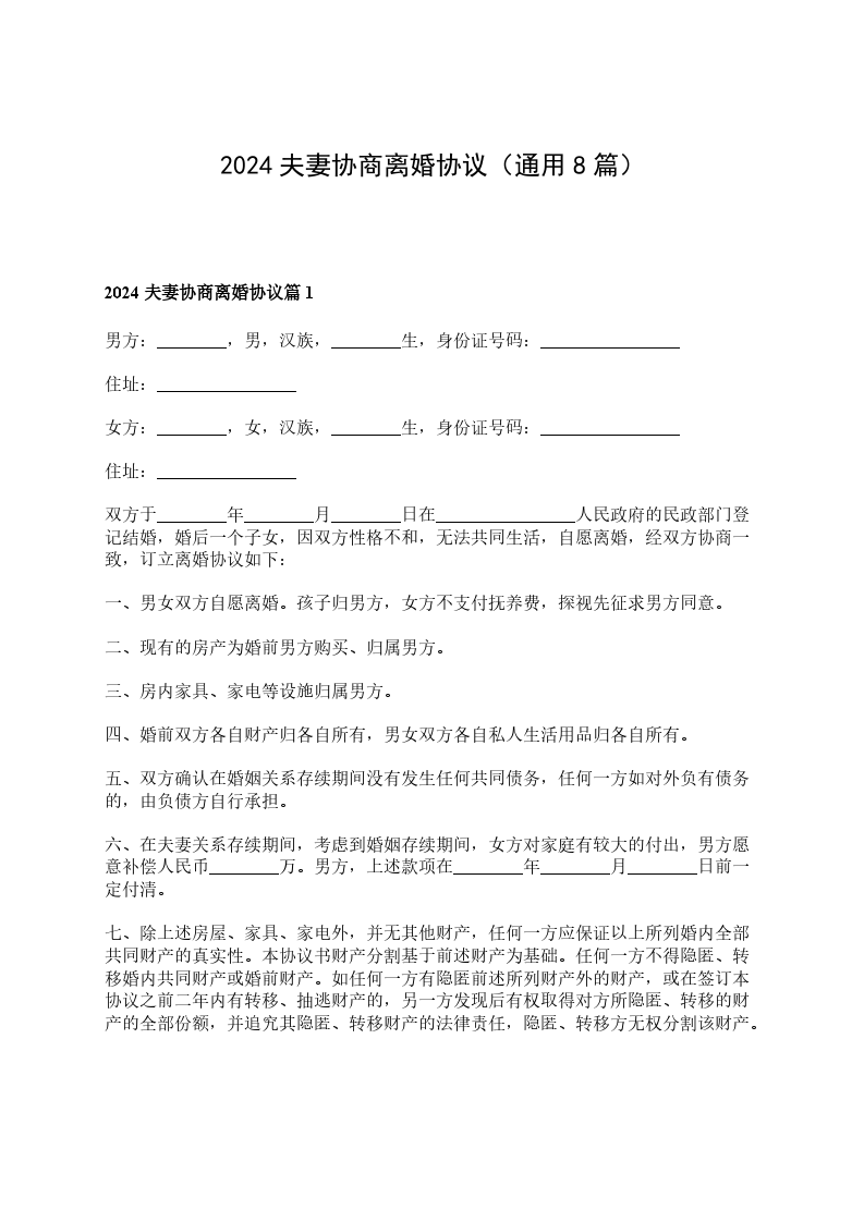 协议人(女方):__________,身份证号:____________________。