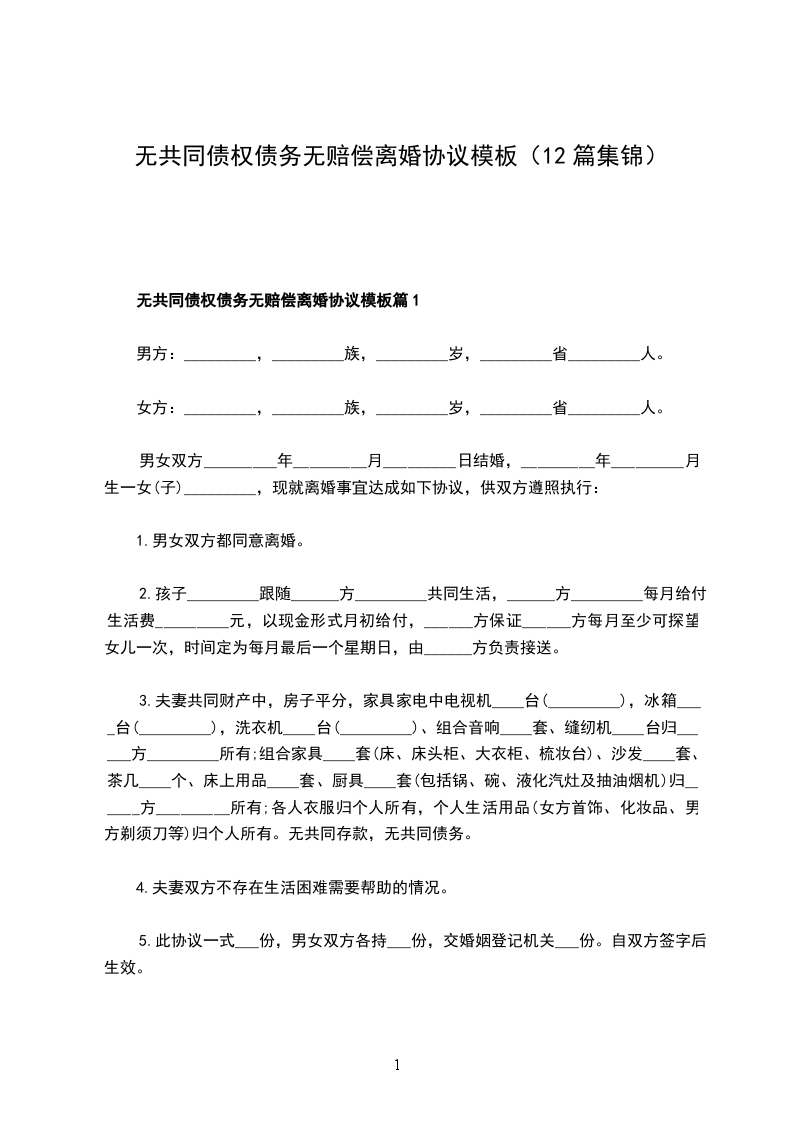 无共同债权无赔偿离婚协议书篇12