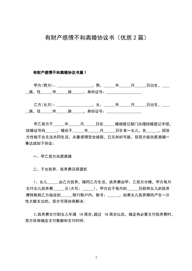 有财产感情不和离婚协议模板篇2