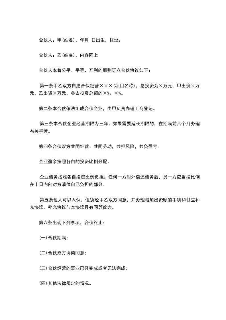 合伙人:__________ (签字或盖章) ______年 ______月 ______日