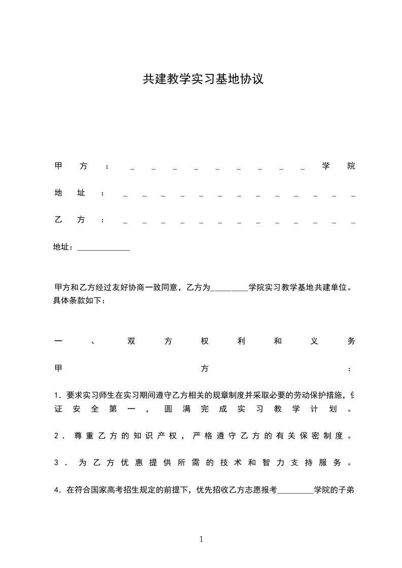 甲方和乙方经过友好协商一致同意,乙方为_________学院实习教学基地共建单位。具体条款如下: