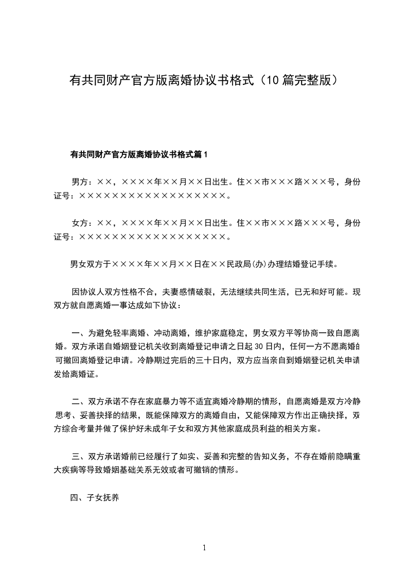 7.本协议一式三份,男女双方各持一份,婚姻登记机关存档一份。