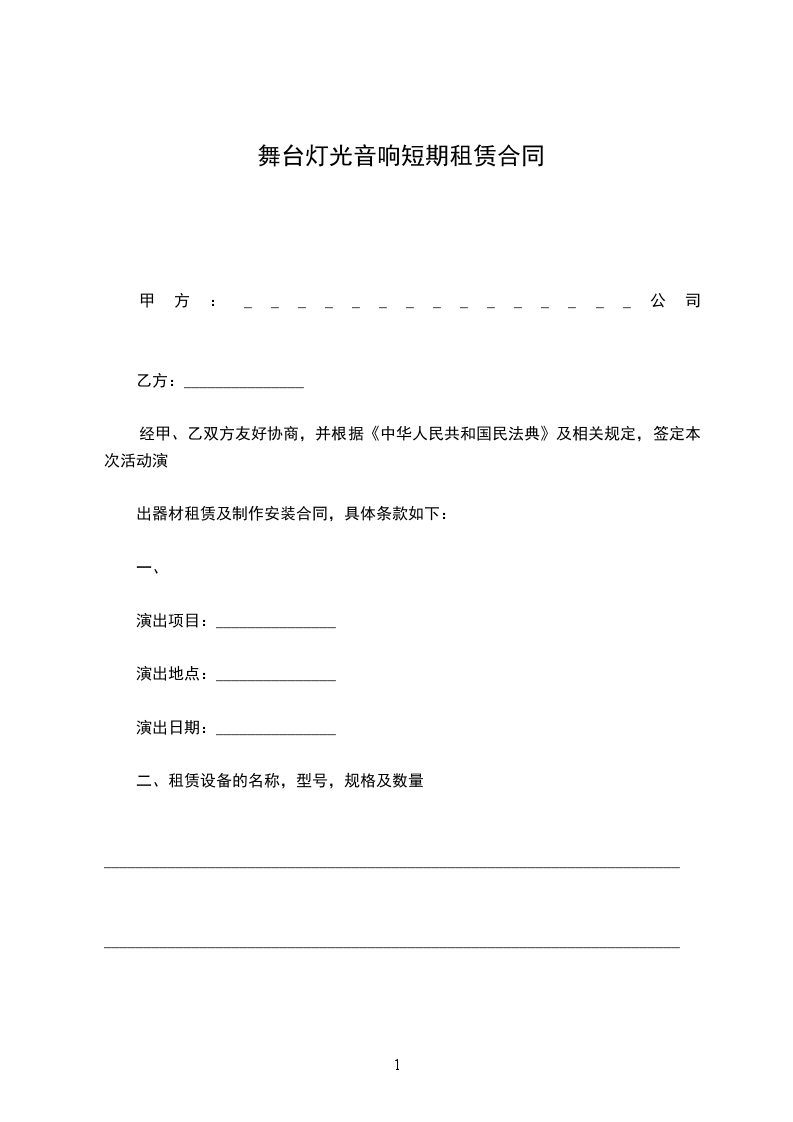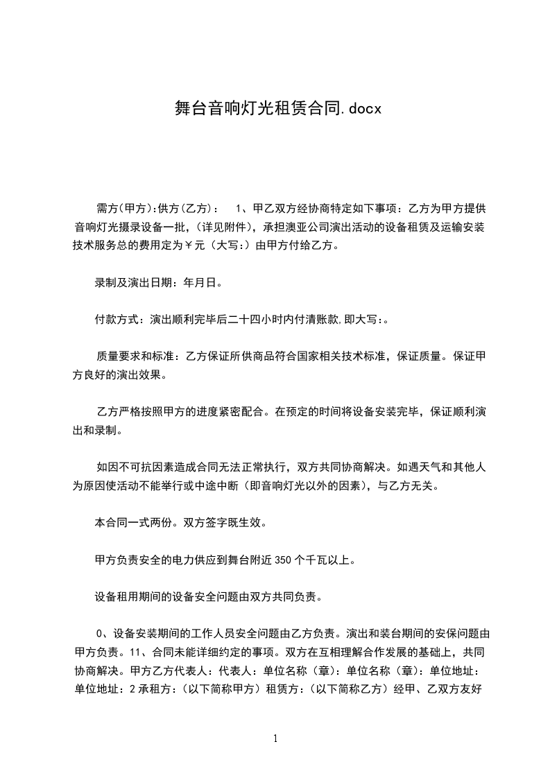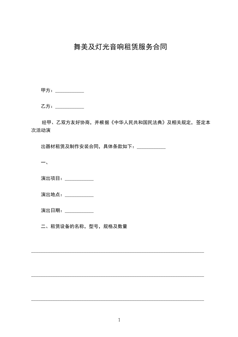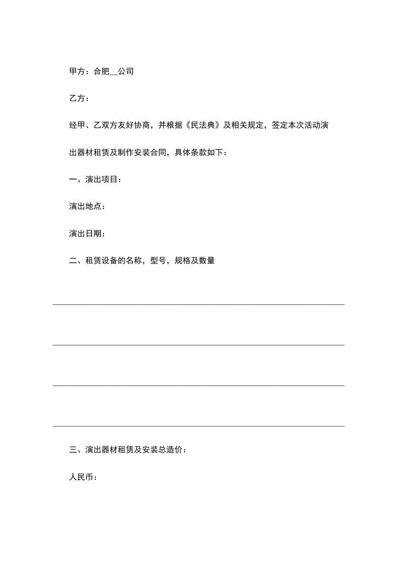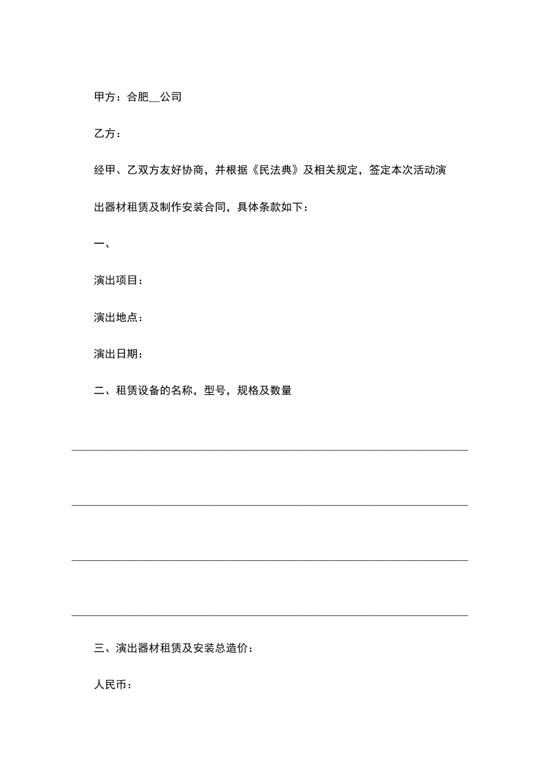 器材设备能正常使用,保证演出的顺利完成。同时,乙方应安排工作人员全程为甲方提供技术支持及服务,确保演出器材在演出过程中正常运行。