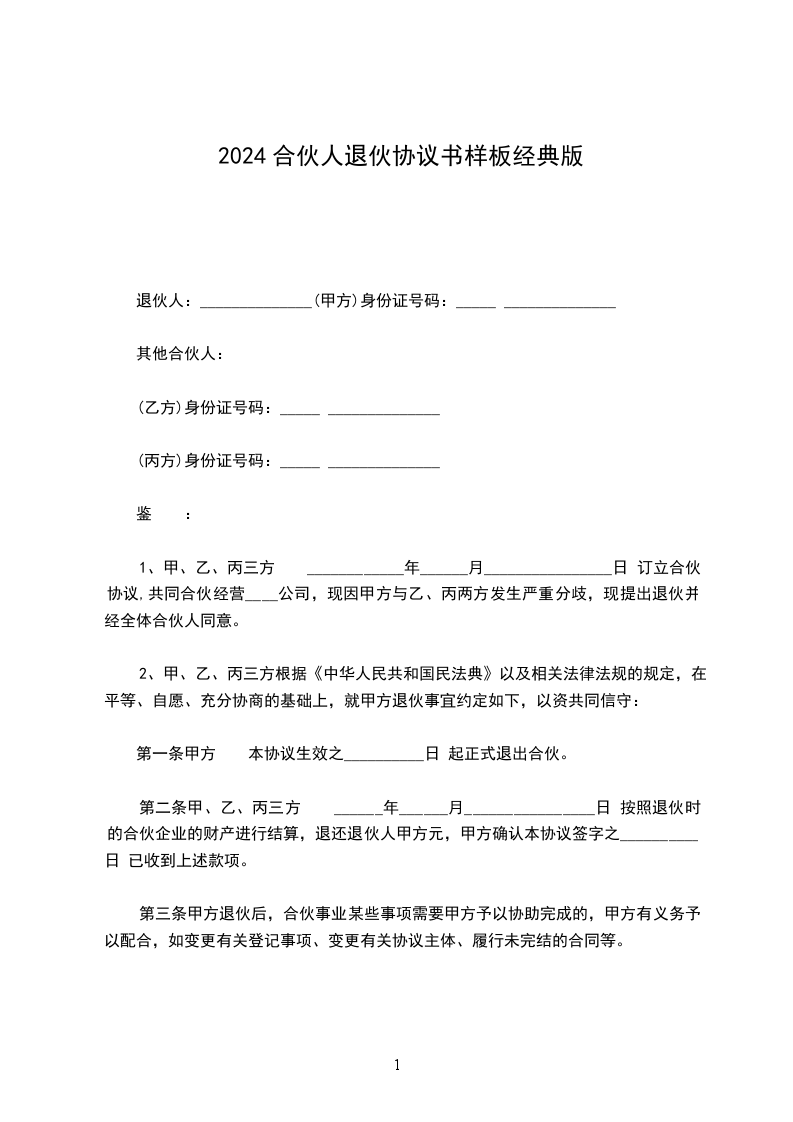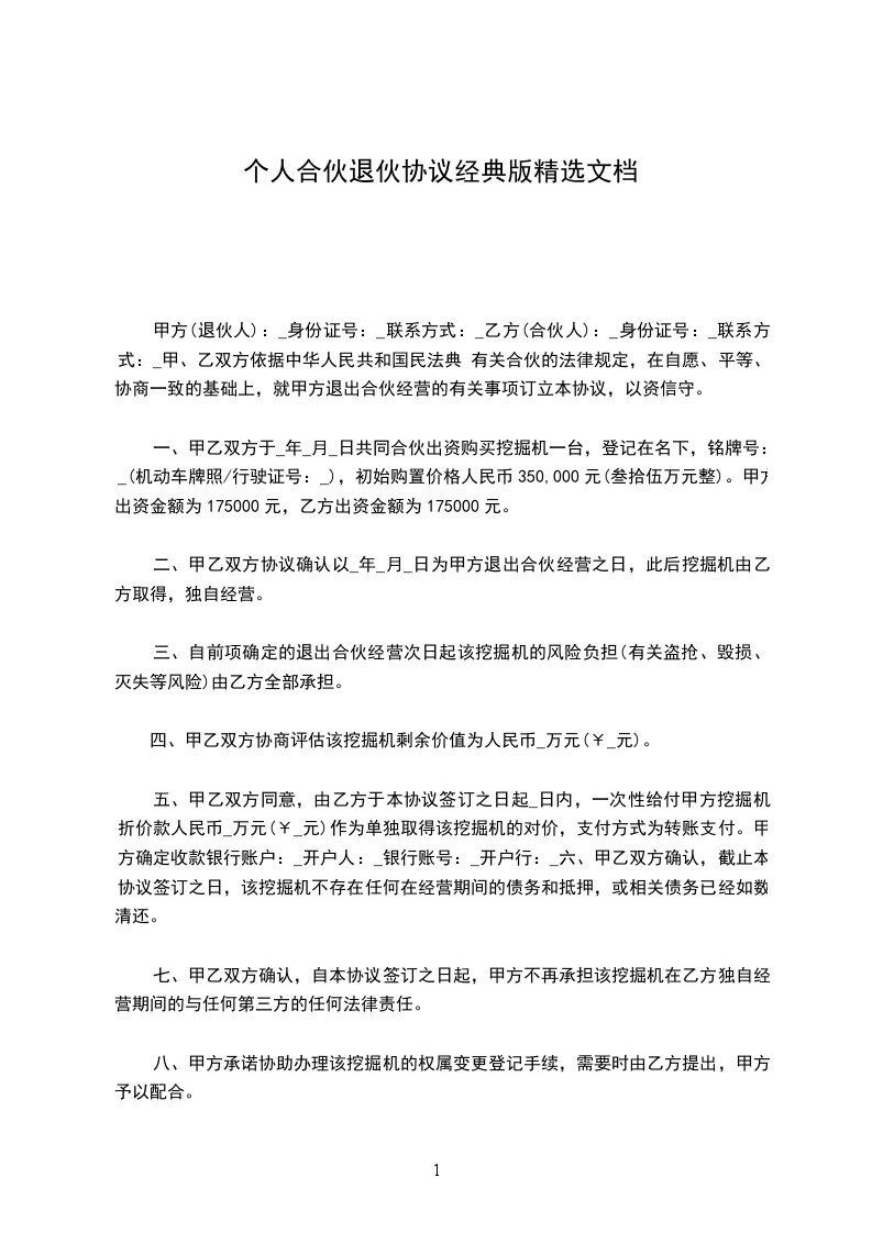 二、经甲乙双方协议同意以___年_____月_____日为甲方退伙之日。