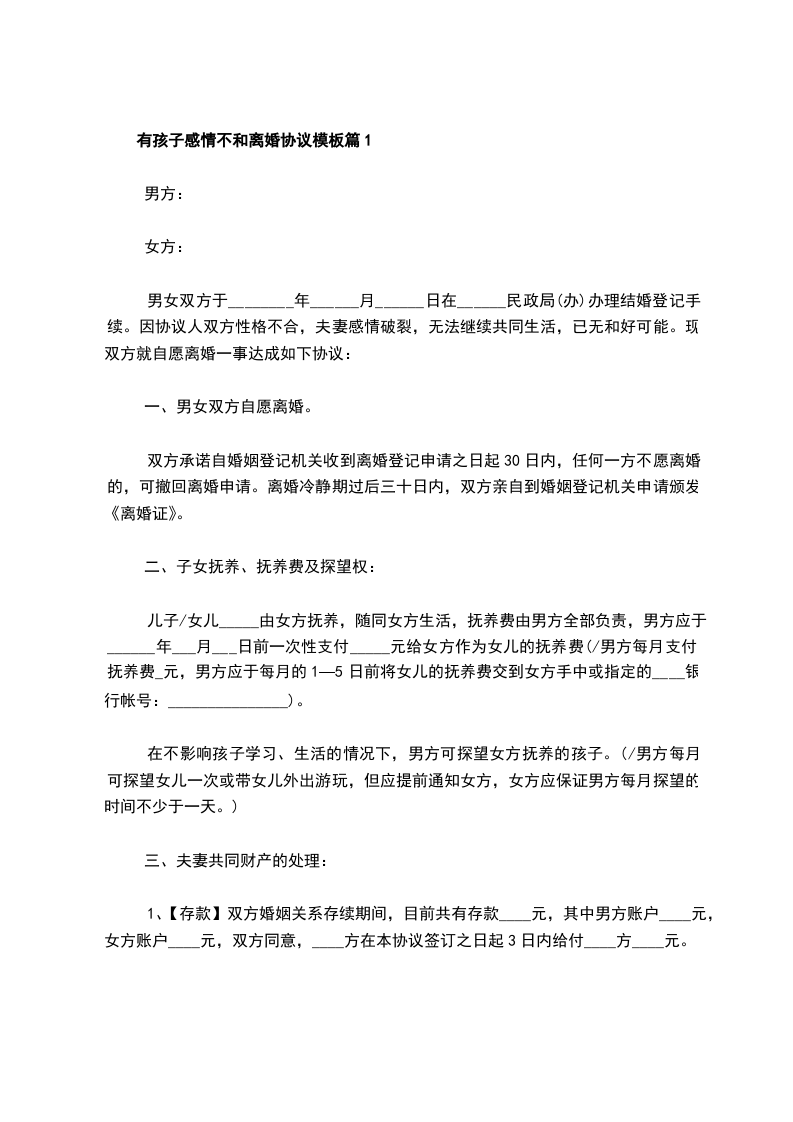 因协议人双方性格严重不合,无法继续共同生活,夫妻感情且已完全破裂,现双方就自愿离婚一事达成如下协议: