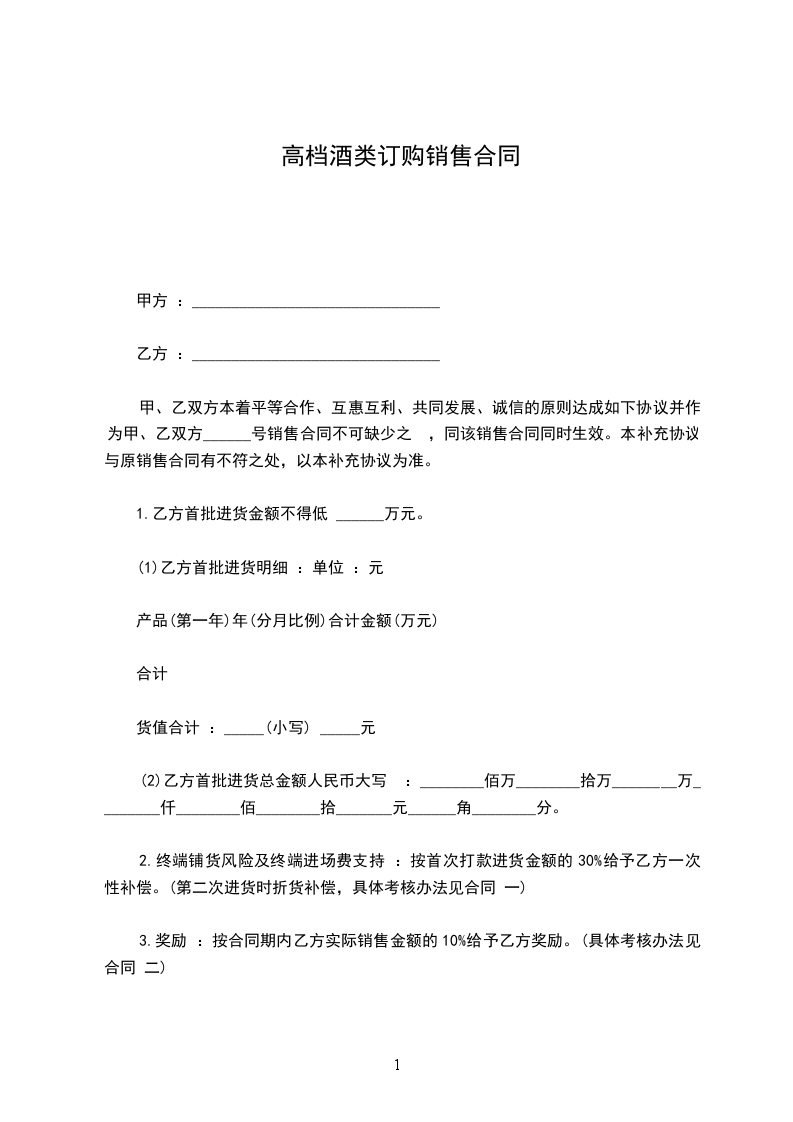 1、按照甲乙双方认可的报价单价格订货后,第一批货到乙方指定的地点,并经乙方指定人员凭甲方出库单对账入库后,先付给甲方总货款的80%,余额作为质量保证金待合同解除时结清,甲方根据首批进货量的10%,分别作为四大节日(五一、十一、元旦、春节)和开业庆典的优惠赠送。