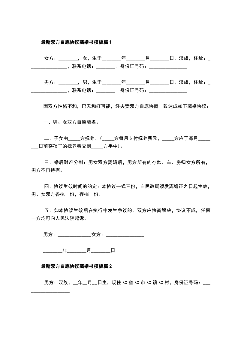 最新双方自愿离婚协议样本篇2