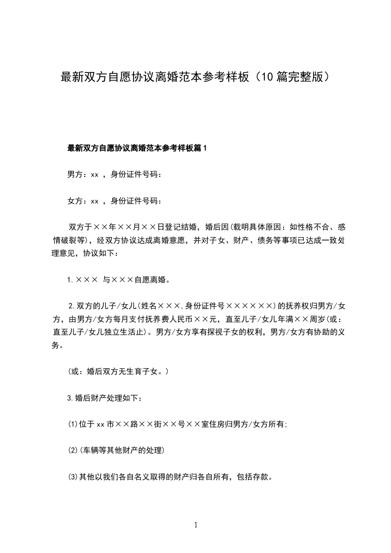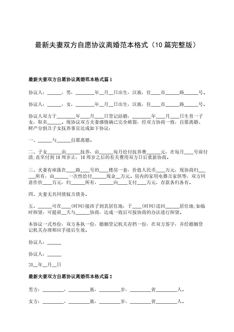 最新双方自愿离婚协议样本篇10