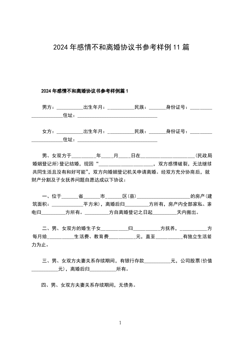 男女双方于____年__月__日在__________婚姻登记部门办理结婚登记手续,结婚证号码__________,婚后于____年__月__日生育一个儿子(女儿),名______。因双方性格不合无法共同生活,夫妻感情已经完全破裂,没有和好可能,经双方就自愿离婚事宜达成一致意见,订立离婚协议如下:
