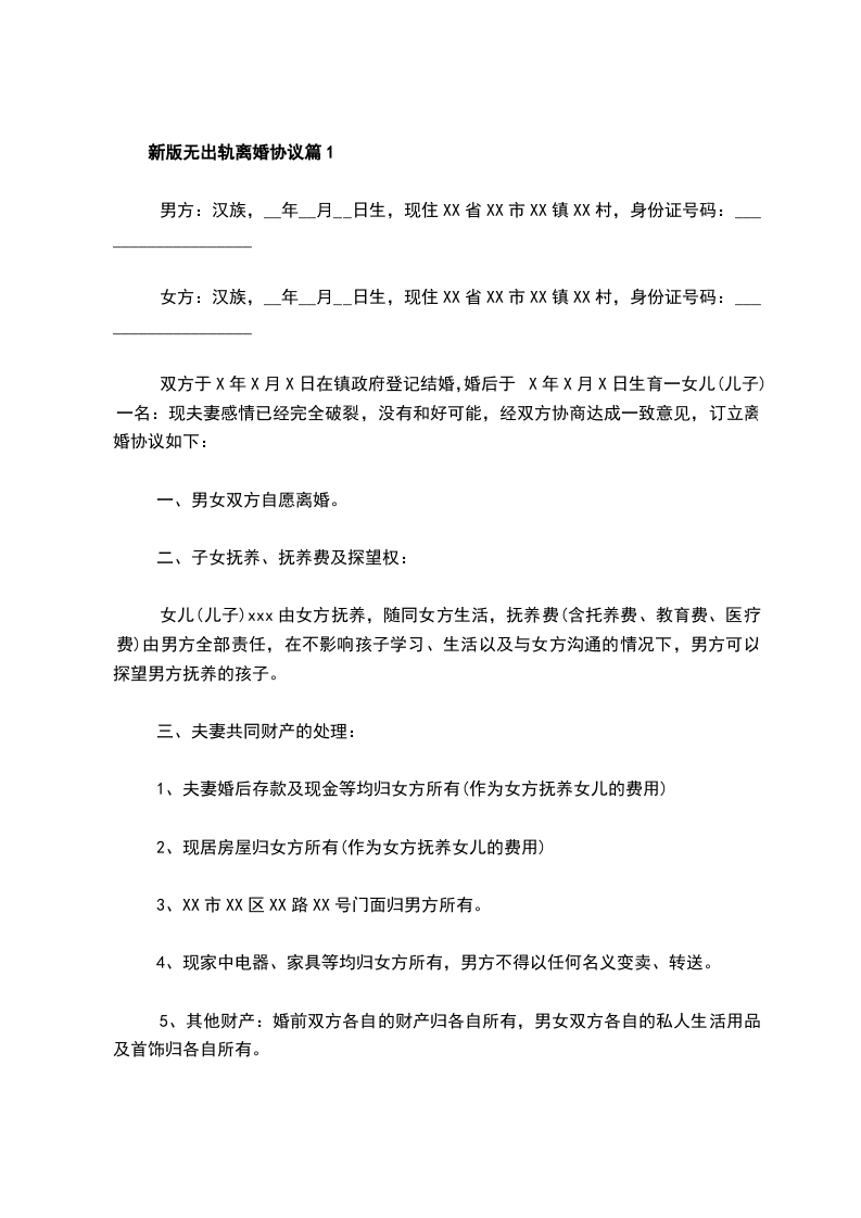 无出轨协议离婚范本格式篇5
