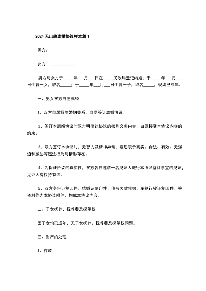 无出轨协议离婚范本格式篇7