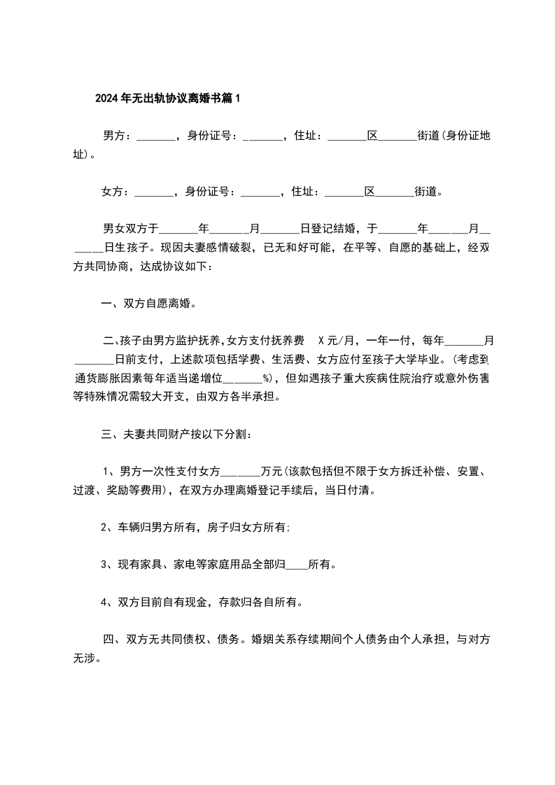 无出轨协议离婚范本格式篇4