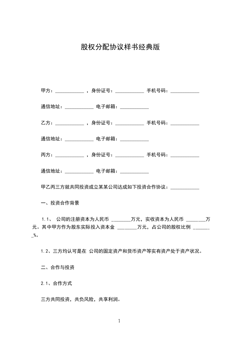 甲方 ________% 股,乙方 ________%的股,丙方 ________% 股,另外剩余 ________% 股,作为公司发展需要,分为管理团队,员工股,前期俱乐部刚成立,剩余股份收益先进入公司账户,后期发展在分配落实下去,
