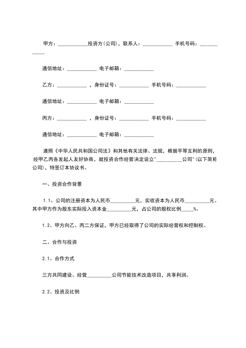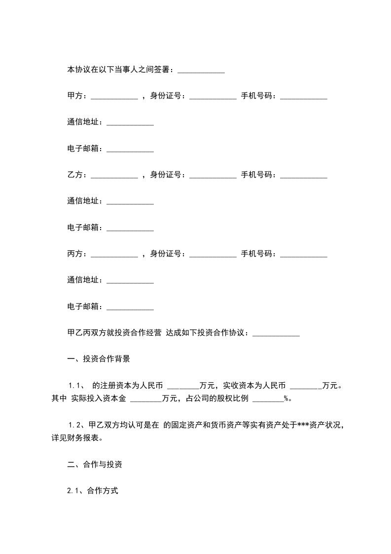 甲乙丙双方就投资合作经营 达成如下投资合作协议:____________