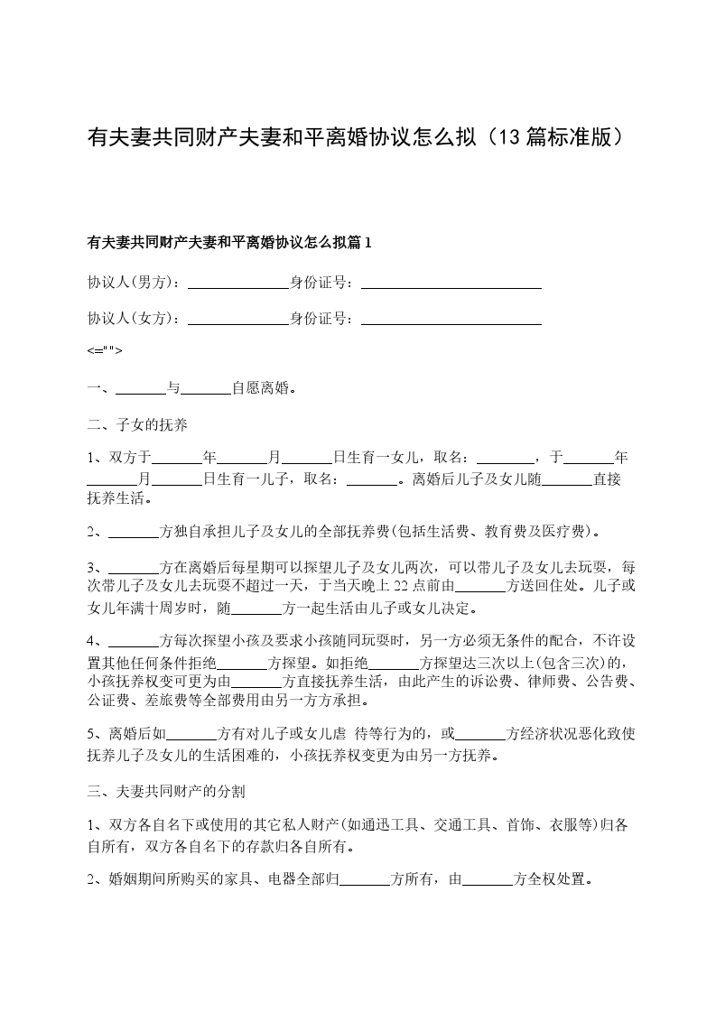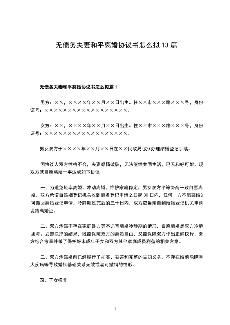 无债务夫妻和平离婚协议书怎么拟篇13