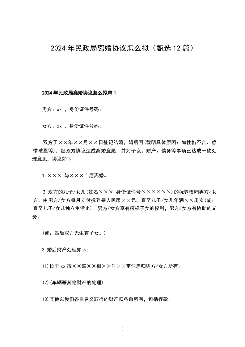 男方与女方于______年____月相识,并于______年____月____日在_________民政局登记结婚,婚后于______年____月____日生育儿子/女儿,名_________。因____________________________致使夫妻双方感情破裂,且已无任何和好可能,现经双方自愿协商达成一致意见,订立离婚协议如下: