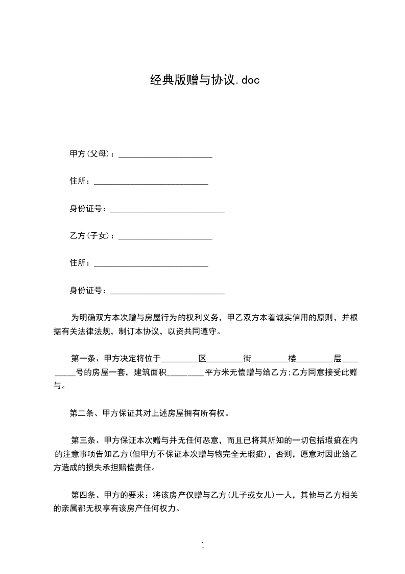 1.甲方将______________赠与乙方
