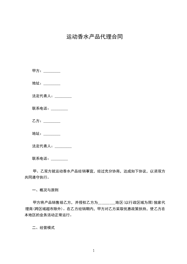 甲、乙双方就运动香水产品经销事宜,经过充分协商,达成如下协议,以资双方共同遵守执行。