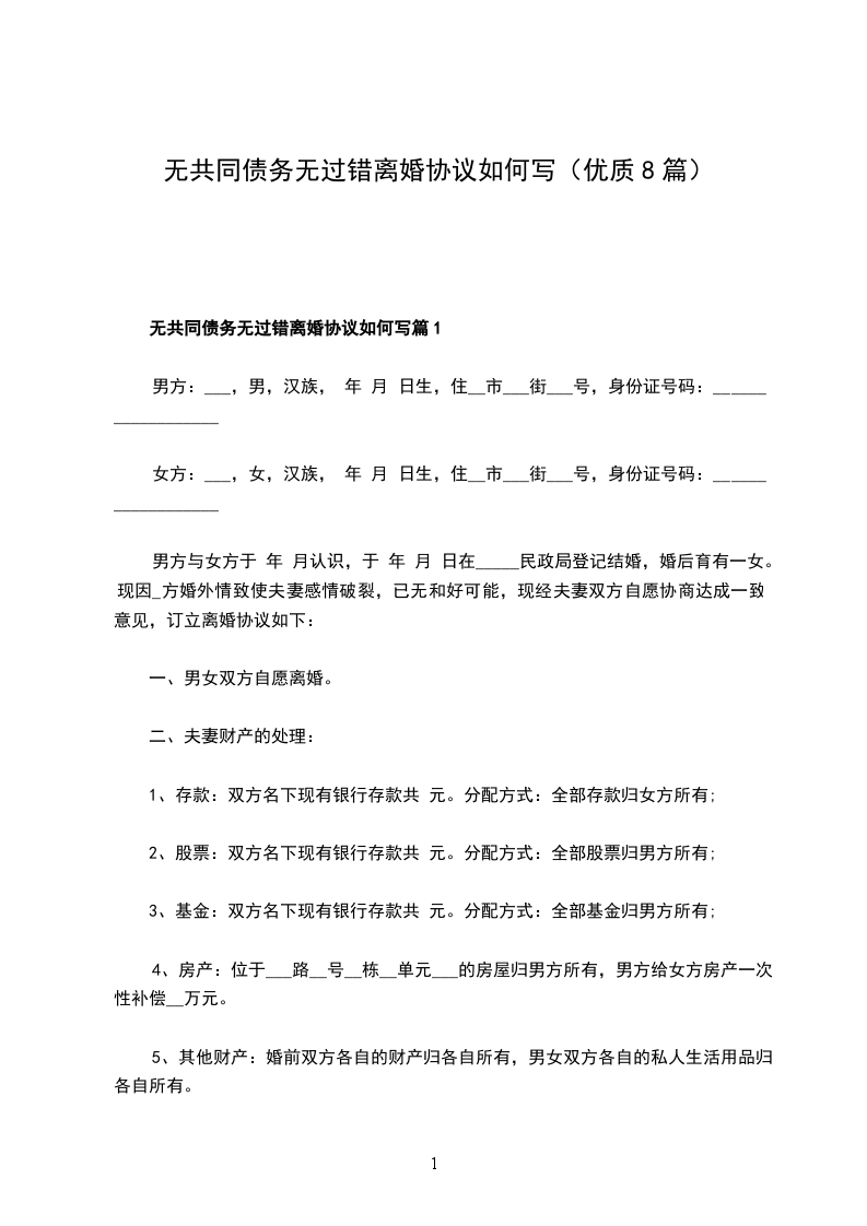 无债权无过错离婚协议书参考样板篇8