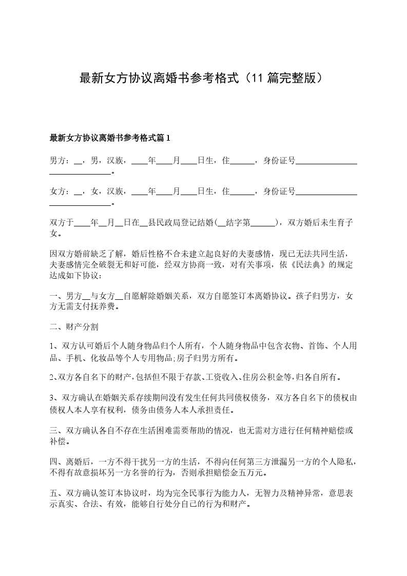 女方:__,女,汉族,____年____月____日生,住______,身份证号______________________________。