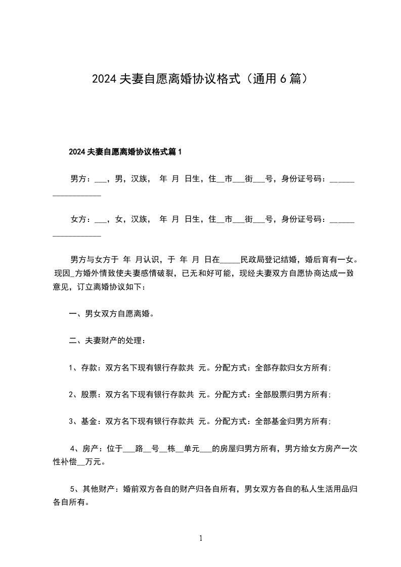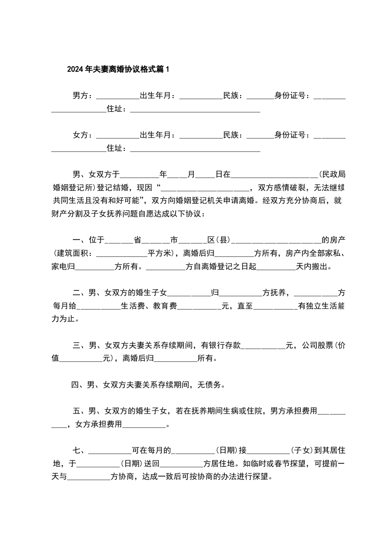 2024夫妻协议离婚书格式篇6