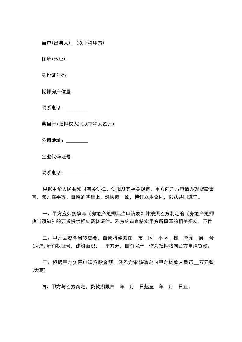 四、甲方以(抵押物名称) 交乙方作为借款的抵押(抵押物详细清单附后)。抵押物的现值为_______万元,担保_______万元贷款的偿还。
