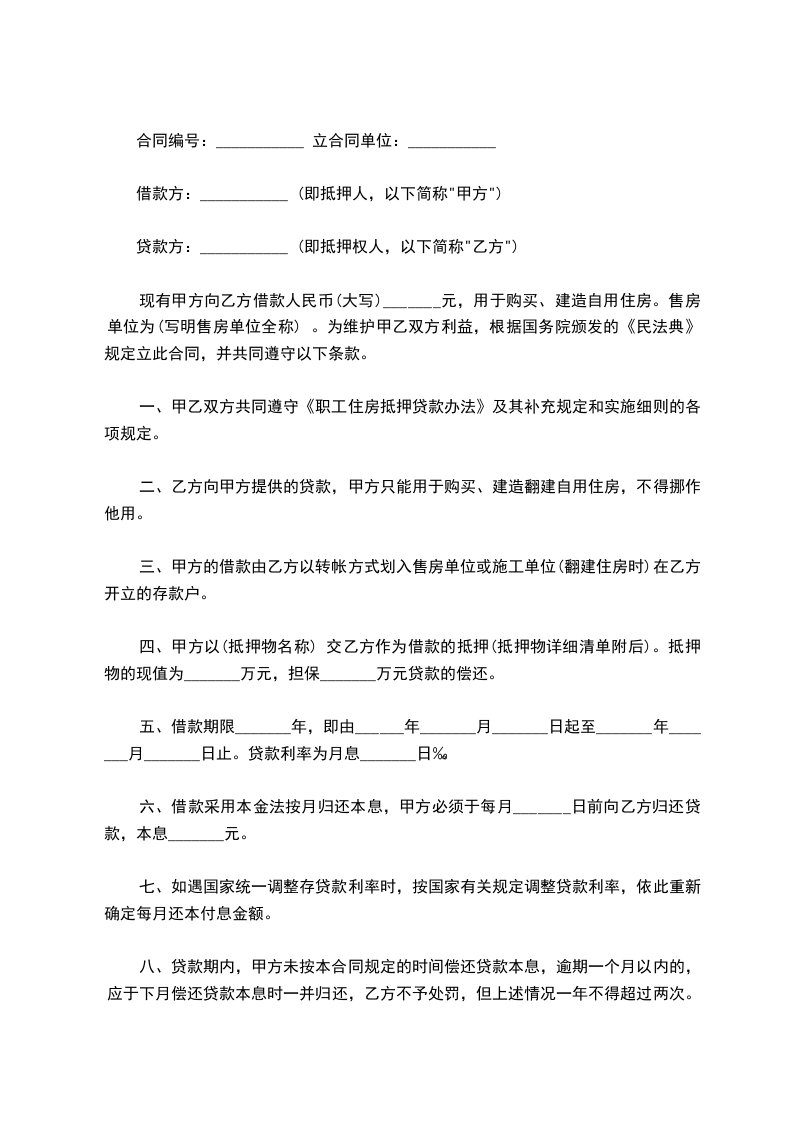现有甲方向乙方借款人民币(大写)_______元,用于购买、建造自用住房。售房单位为(写明售房单位全称) 。为维护甲乙双方利益,根据国务院颁发的《民法典》规定立此合同,并共同遵守以下条款。