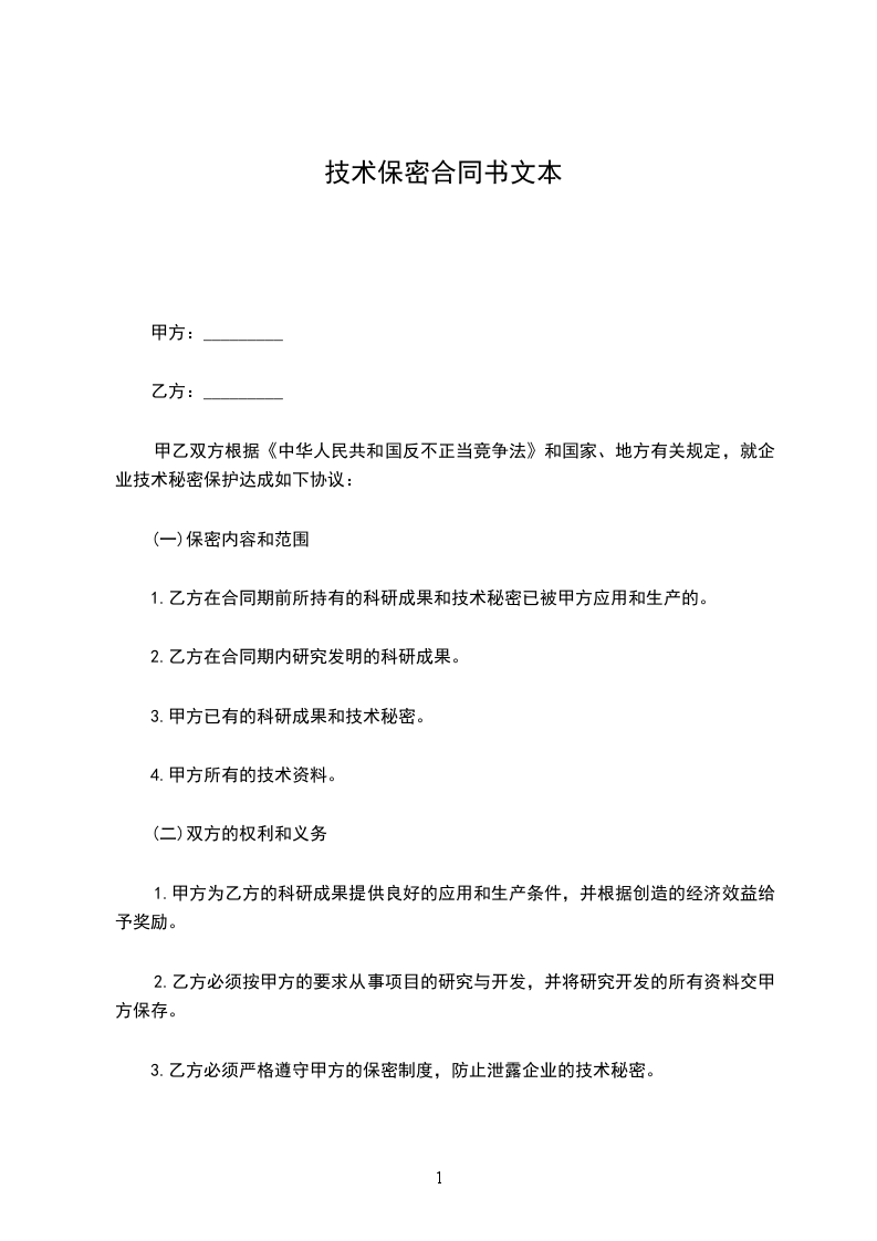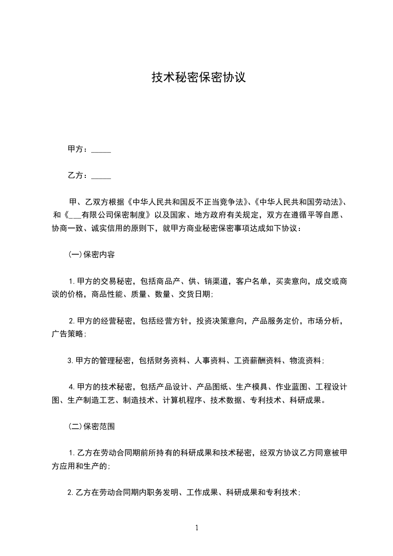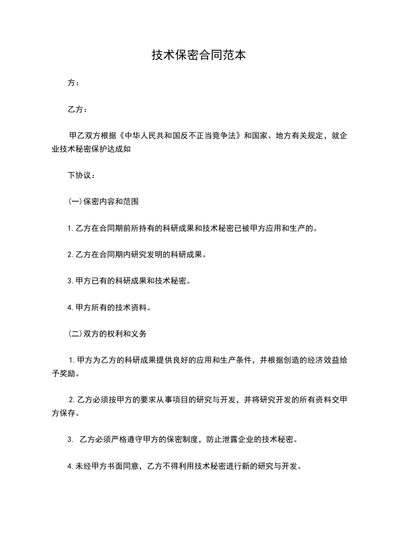 技术保密合同范本