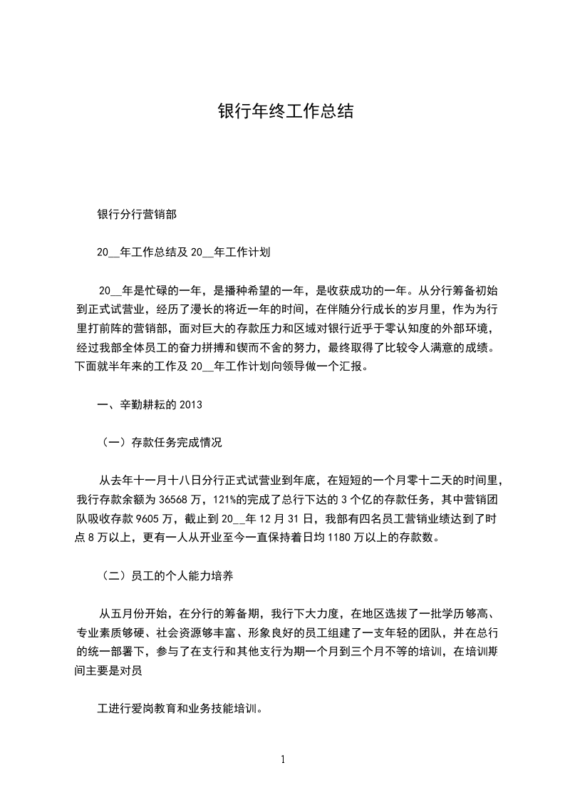 20__年是忙碌的一年,是播种希望的一年,是收获成功的一年。从分行筹备初始到正式试营业,经历了漫长的将近一年的时间,在伴随分行成长的岁月里,作为为行里打前阵的营销部,面对巨大的存款压力和区域对银行近乎于零认知度的外部环境,经过我部全体员工的奋力拼搏和锲而不舍的努力,最终取得了比较令人满意的成绩。下面就半年来的工作及20__年工作计划向领导做一个汇报。