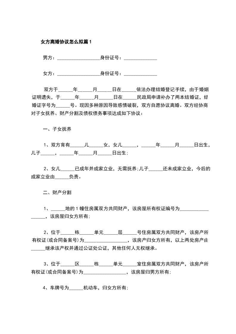 1、______地的1幢住房属双方共同财产,该房屋所有权证编号为__________________,该房屋归女方所有;
