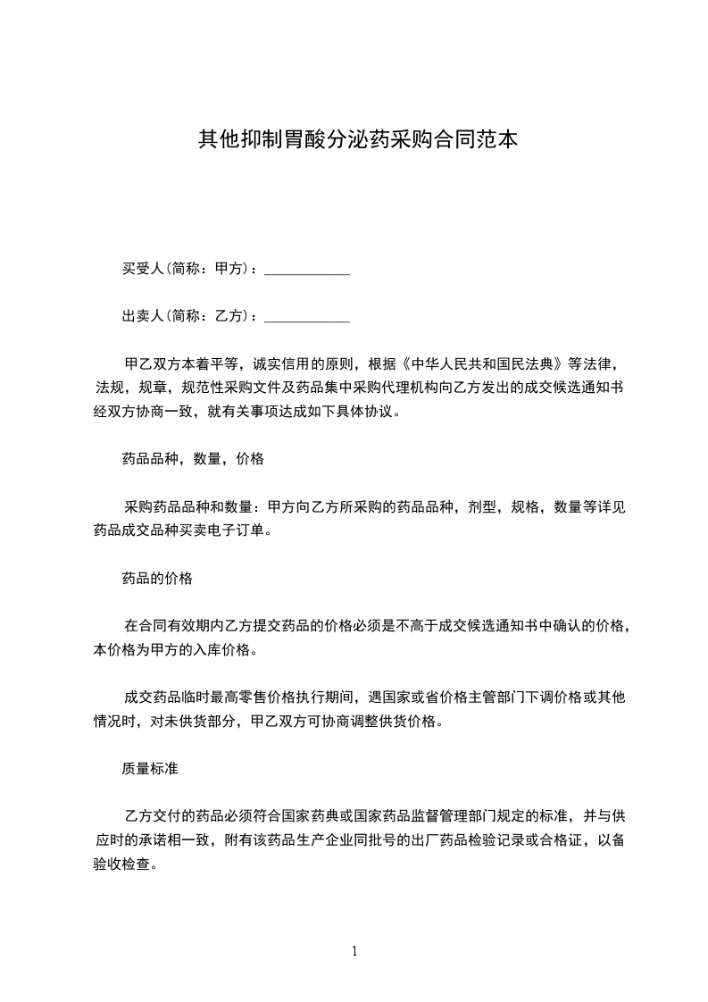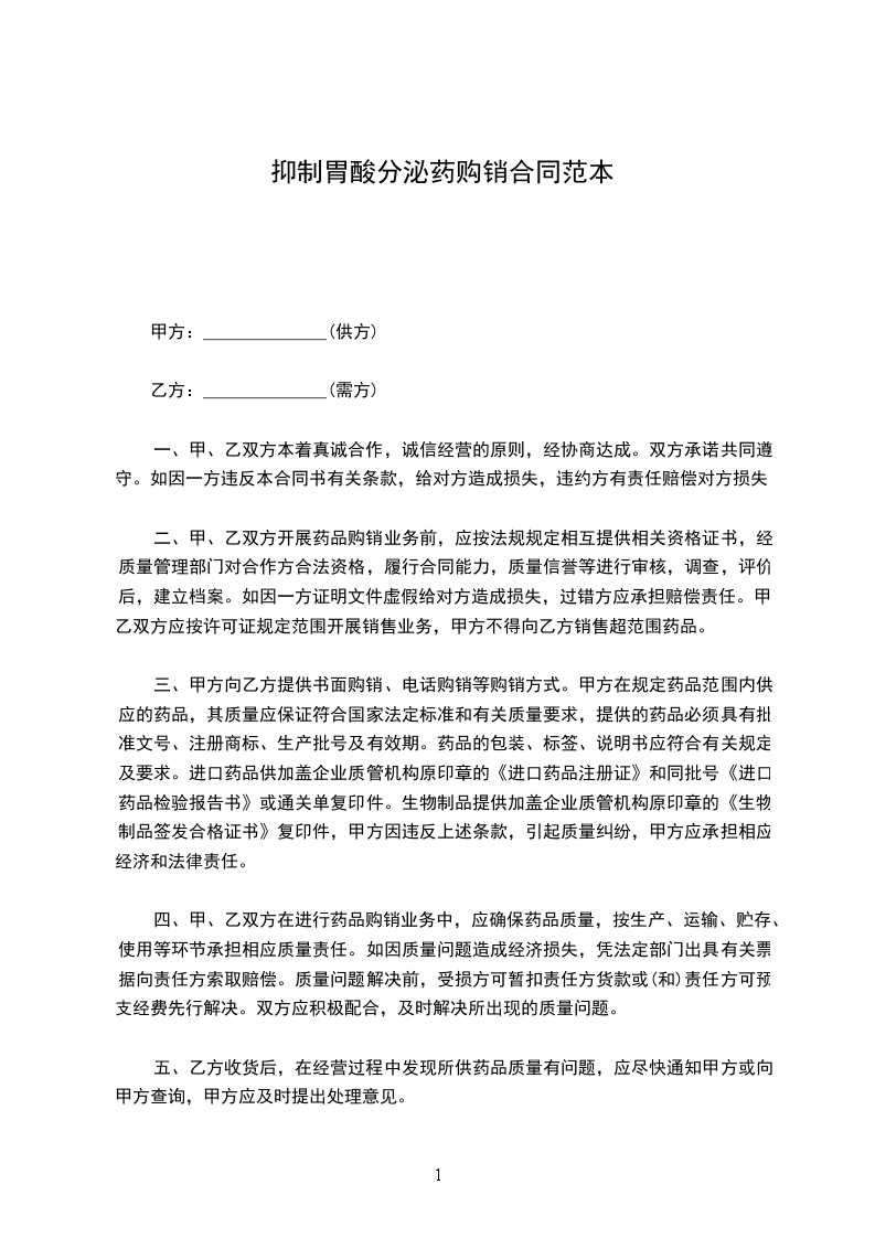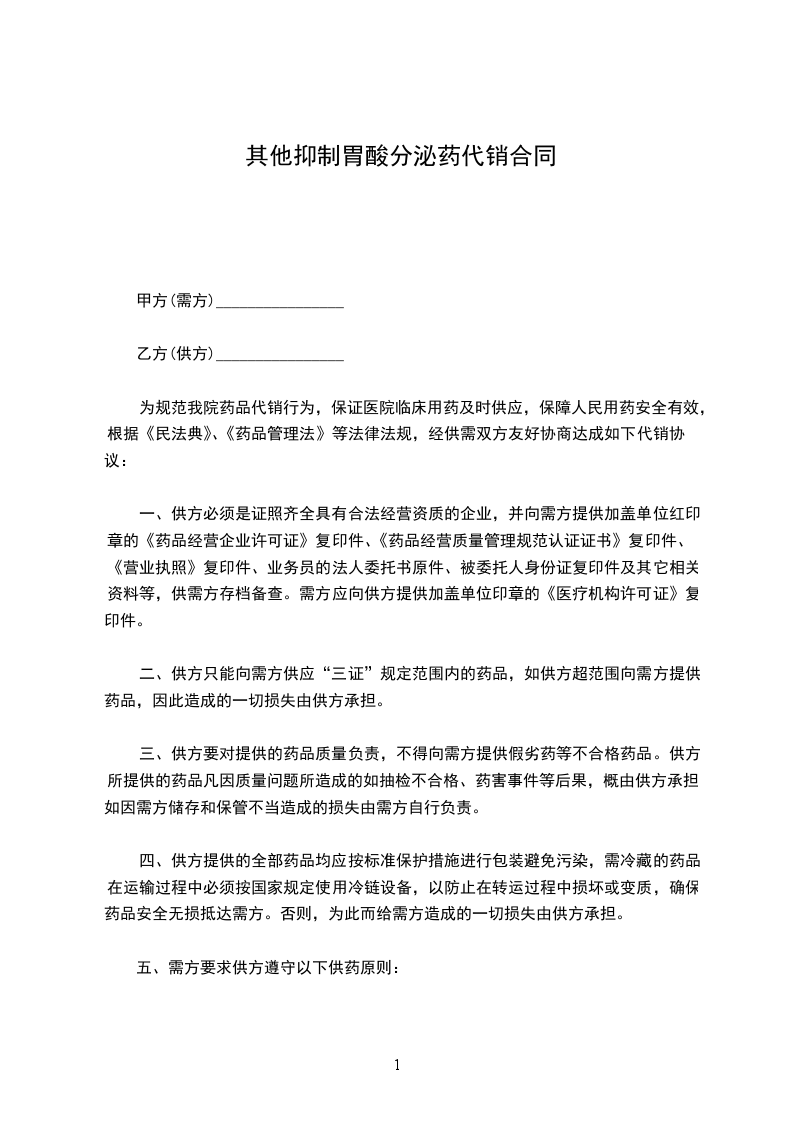 抑制胃酸分泌药代销合同