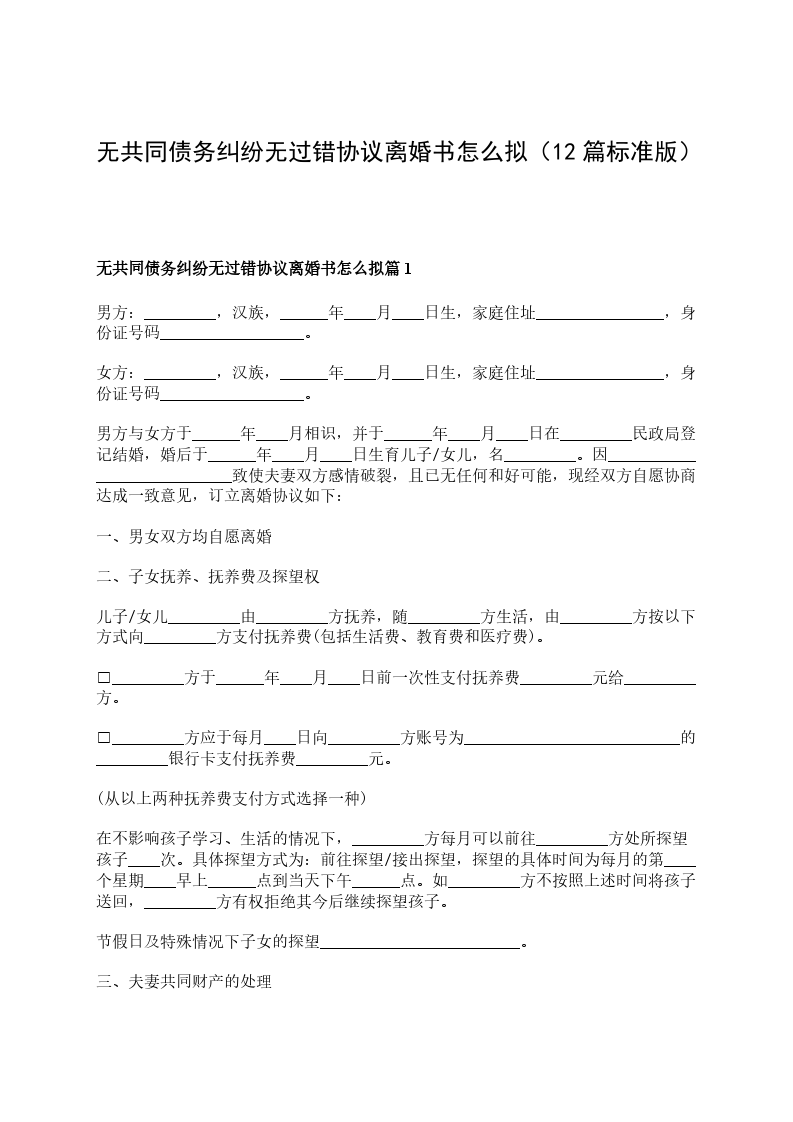 □双方确认在婚姻关系存续期间没有发生任何共同债务,任何一方如对外负有债务的,由负债方自行承担。