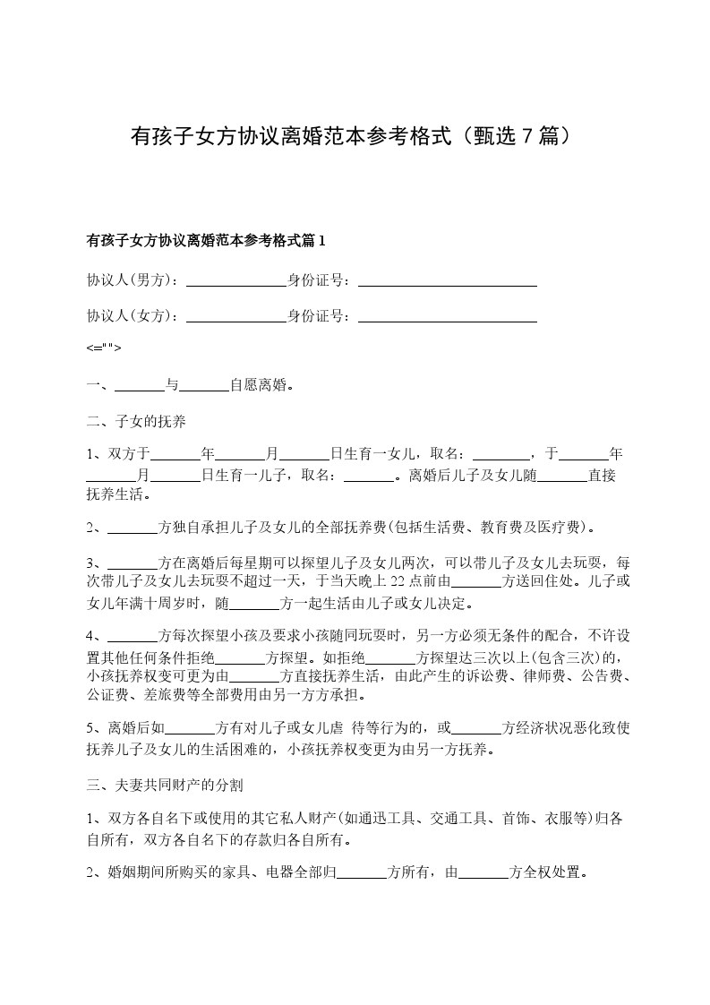 七、本协议一式三份,当事人双方各执一份,交婚姻登记机关存档备案一份。